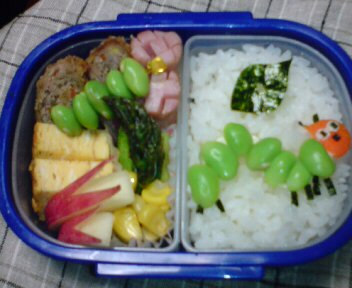 朝寝坊して、こんなにヒドイお弁当の時もあったしね…。
