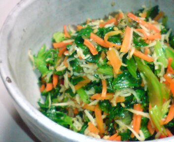 じゃことセロリの葉、人参、ごま油、みりん、お醤油でささっと炒めた物。