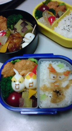 難解な謎解きで「アハ体験」して、気分よくご飯の続きを食べようと思い、手元のおかずを見たらば…ちーすけのひよこちゃんの笛が入っていました。なんとなく食べる気が失せて、キッチンにさげました(笑)