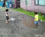 私がカーテンを開けて、稲光を見ようとすると、子供達は