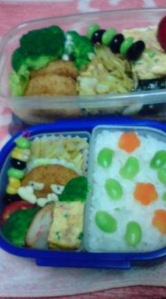 朝寝坊して、こんなにヒドイお弁当の時もあったしね…。